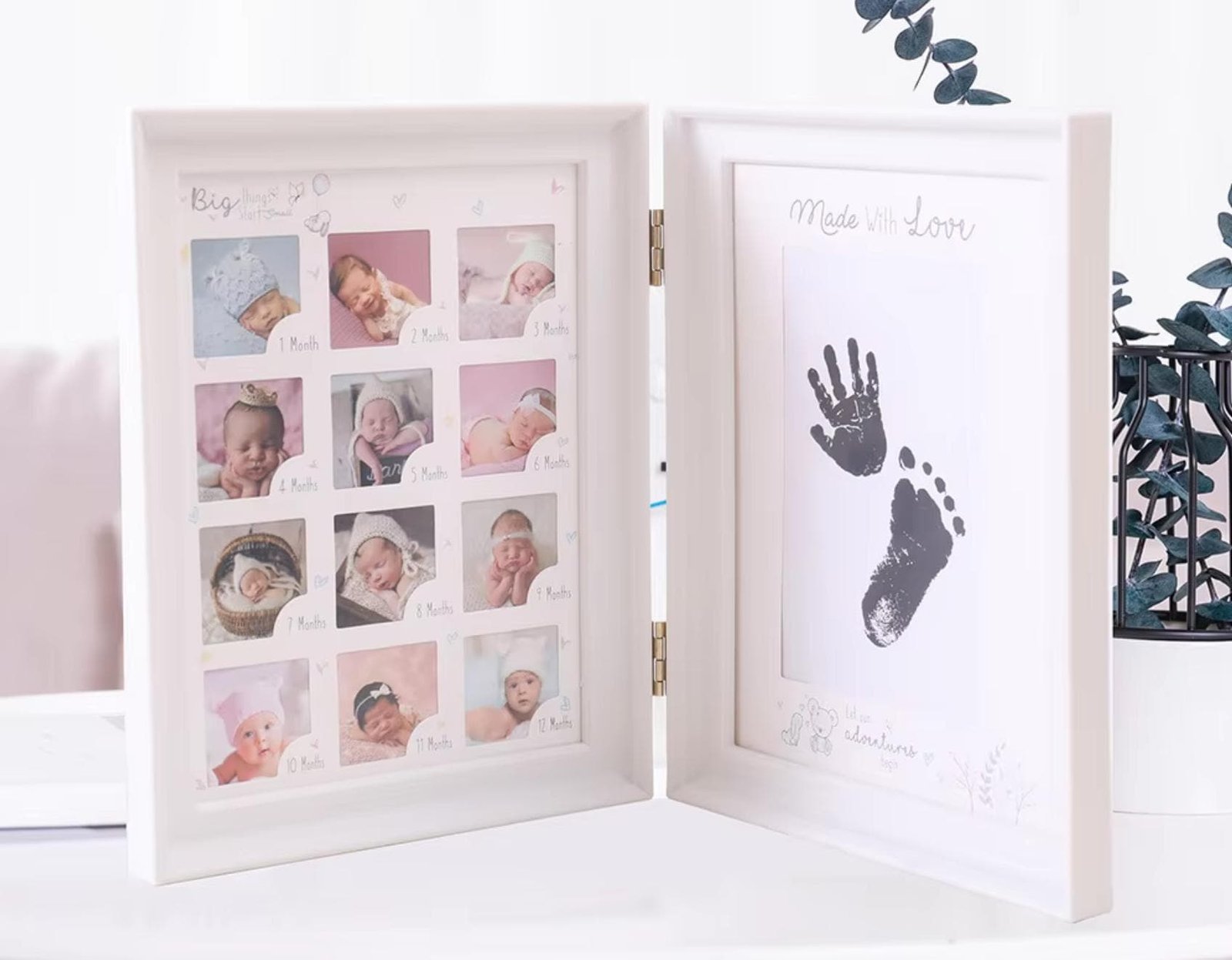 • 0–12 Month Milestone Display – Dedicated photo slots to capture each month of your baby’s first year.